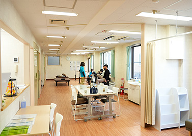 バイタルチェックや利用者様の服薬管理、食事提供時の介助、入浴介助などです。またリハビリ補助として機器への誘導や、移動介助などを行い、機能訓練をサポートします。1日の体調をご家族への報告も看護師の役割です。