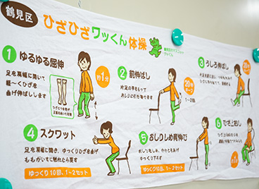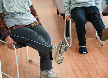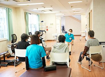 歩行に必要な筋力強化体操や上下肢体幹の柔軟体操などを行っています。