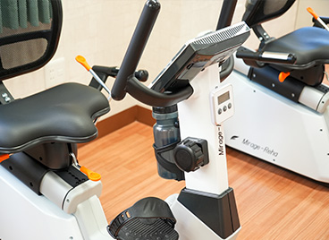 自転車エルゴメーターバイタルを確認しながら細かく負荷の調整が行えます。