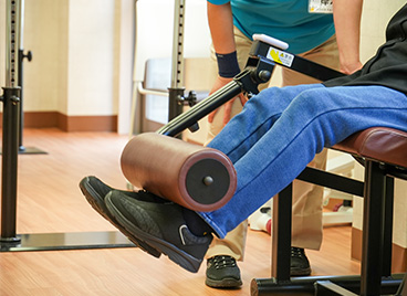 レッグプレス膝関節が悪い方でも関節の位置を細かく調整できて運動療法を行えます。